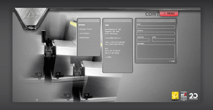 Website da CORTARTE, uma empresa produtora de cortantes gráficos, clichés, serigrafia e plasticização.